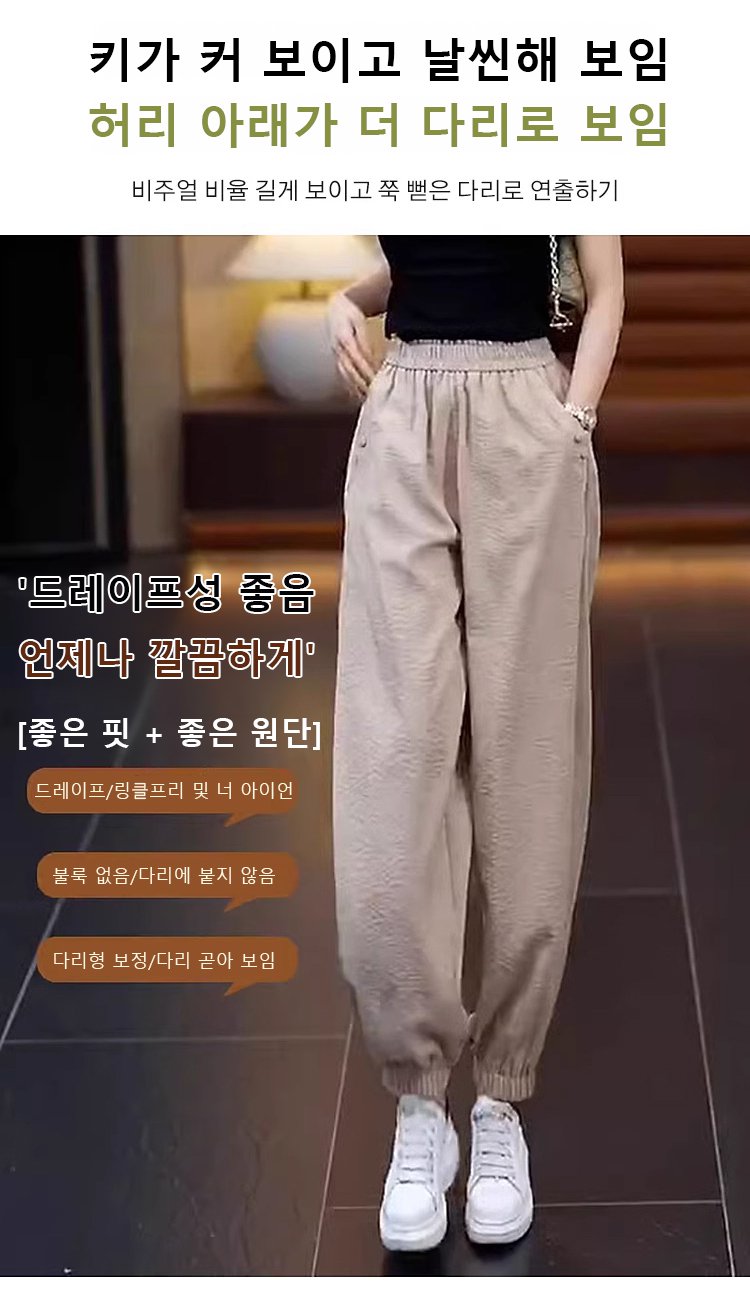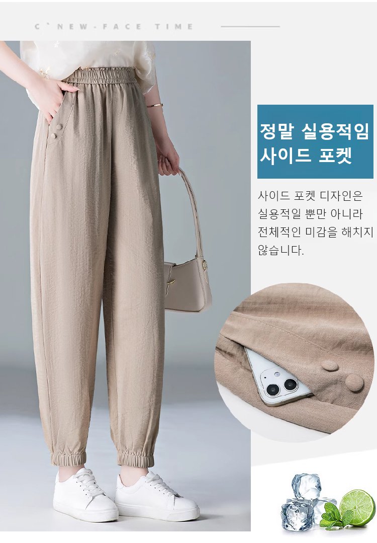 여성용 아이스 실크 면마 배기바지